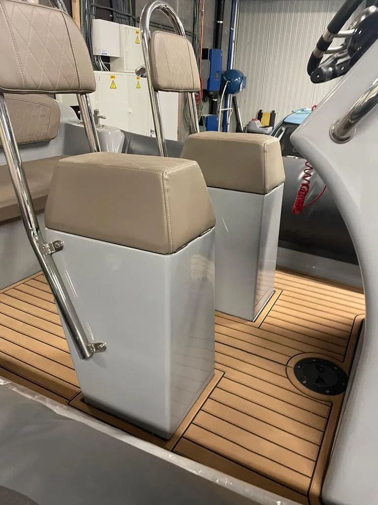 De boot is ontworpen met het oog op gebruiksgemak en ergonomie. De centrale console biedt een goede beschutting en overzichtelijke bediening, en de indeling maakt haar geschikt voor dagtochten, watersport of professioneel gebruik. Dankzij haar zeewaardige karakter en CE-ontwerp is deze RIB uitstekend inzetbaar op kustwateren en open zee.