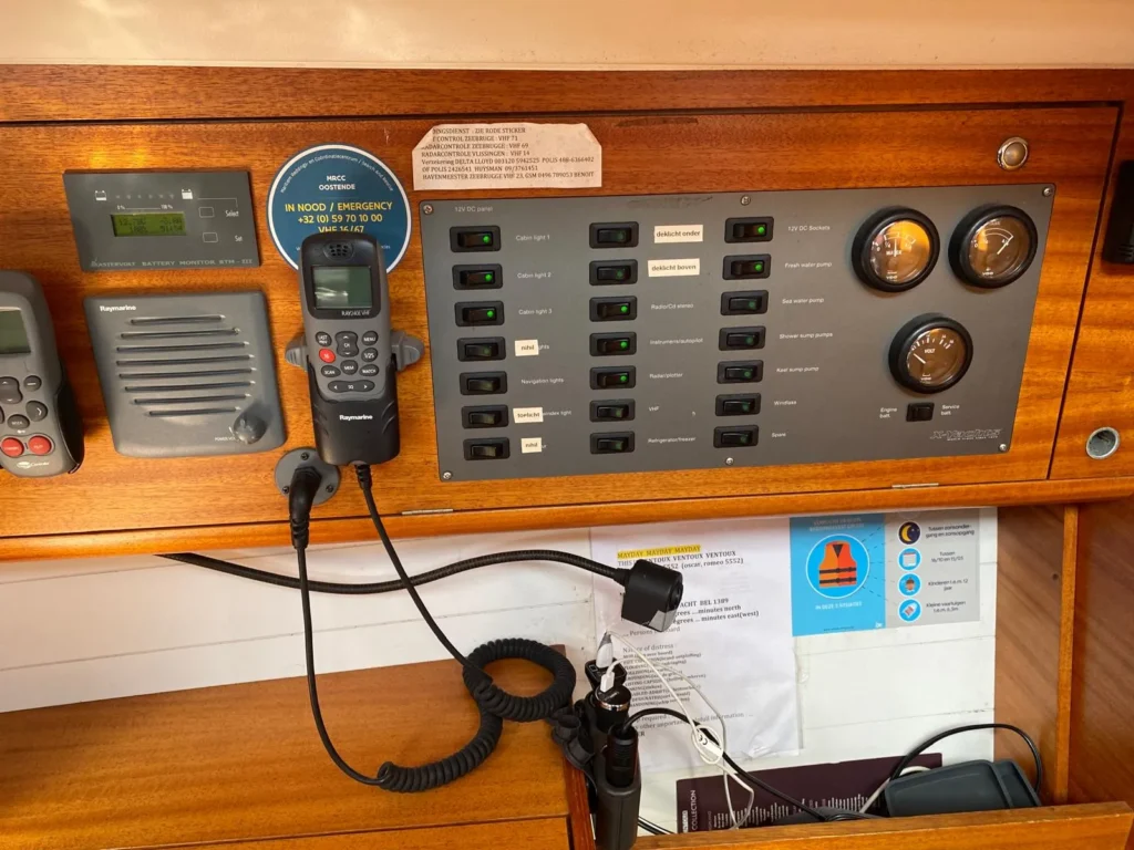 Voltage: 12V + extra verdeler en 1x 220V aan navigatietafel en 1 in motorcompartiment achtercabine