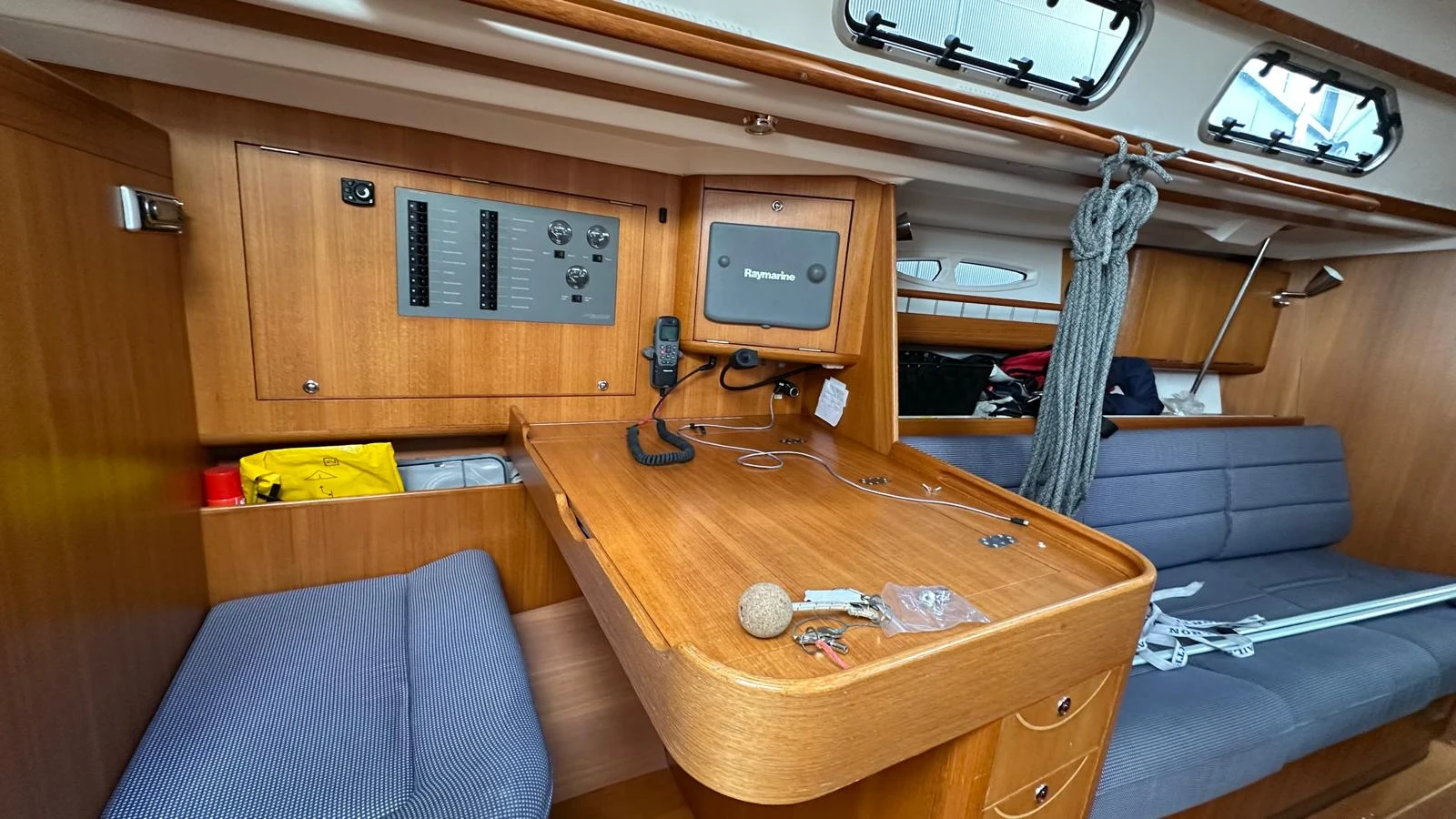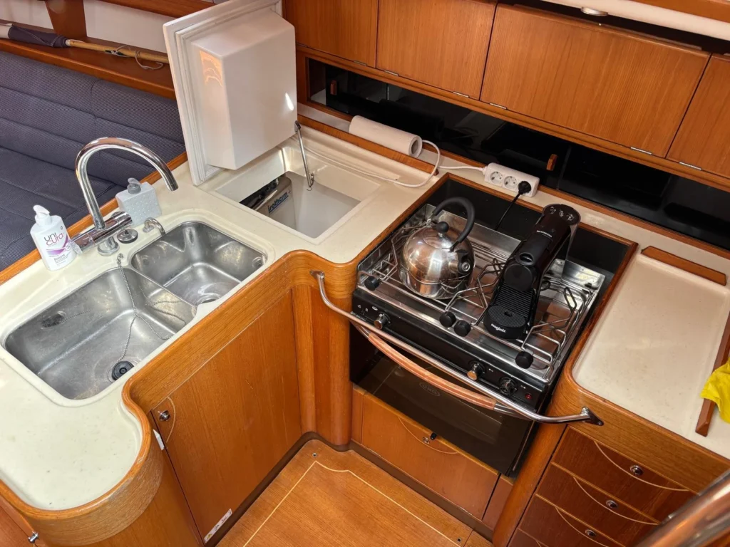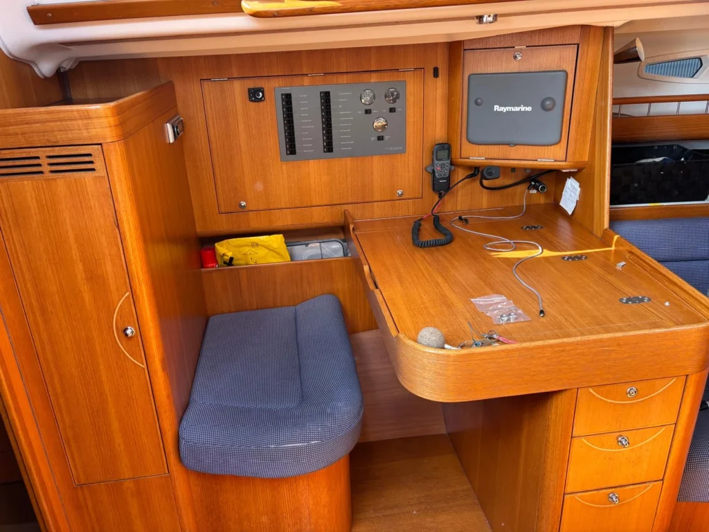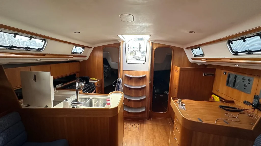 Met een sterke Yanmar 40 pk motor en goede navigatieapparatuur is het jacht betrouwbaar en compleet uitgerust. Binnen zijn er 3 hutten en verwarming, wat het ook geschikt maakt voor verblijf aan boord.