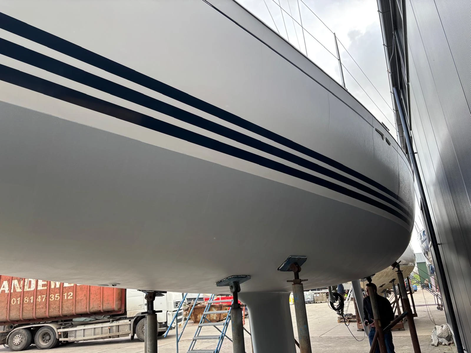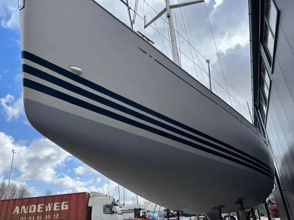 Onderwaterschip: behandeld in 2021 door X-Yachts (6 lagen Gelshield, antifouling Nautix A4 Speed wit)
