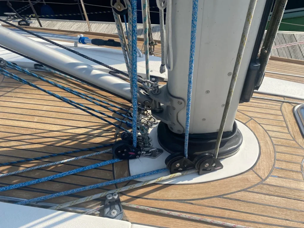 De Sparcraft mast met drie zalingen, het Reckmann rolsysteem (geserviced in 2023) en een complete set Andersen RVS lieren zorgen voor eenvoudig en efficiënt zeilbediening. Recente North Sails (2023) – een doorgelat grootzeil en een rolfok in NPL Tour Xi-doek – leveren goede prestaties, terwijl extra zeilen, waaronder spinnakers, haar geschikt maken voor uiteenlopende zeilomstandigheden.