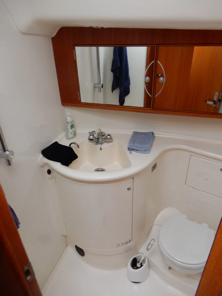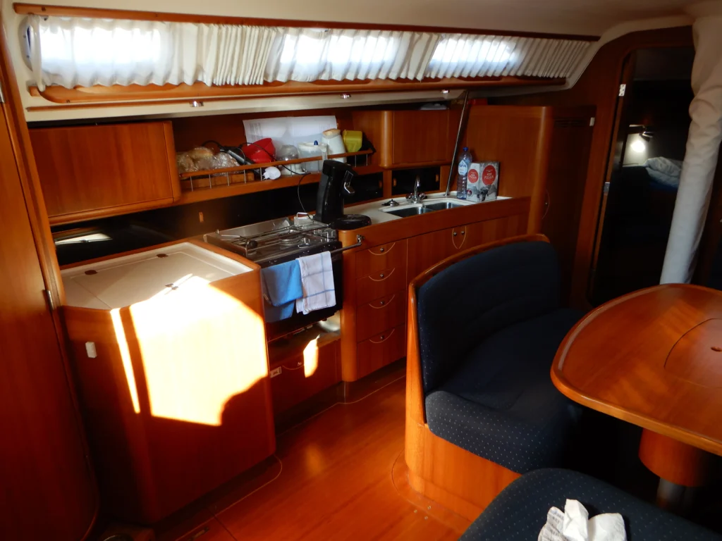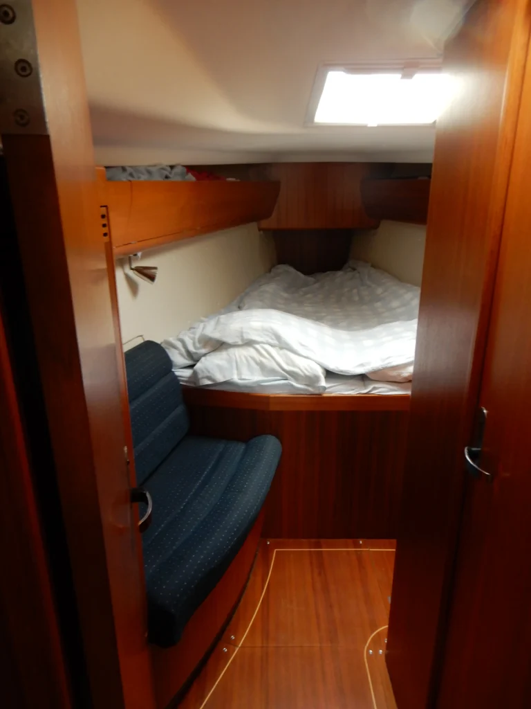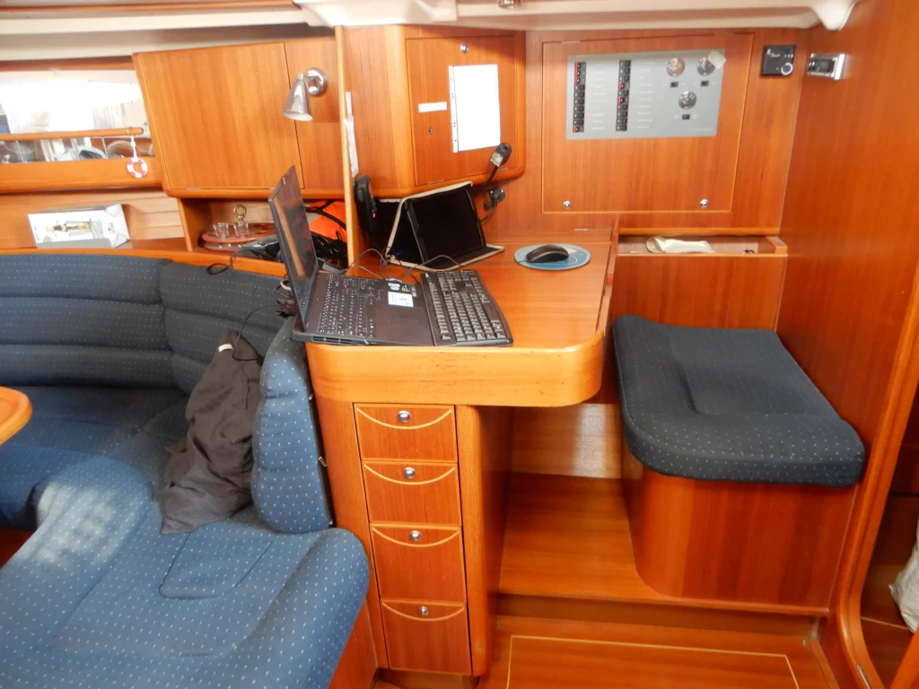 Het interieur is afgewerkt met het bekende hoogwaardige houtwerk van X-Yachts; de bekleding is als nieuw en de indeling is ruim en praktisch.