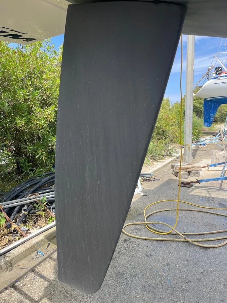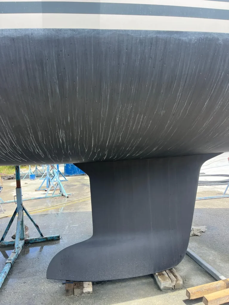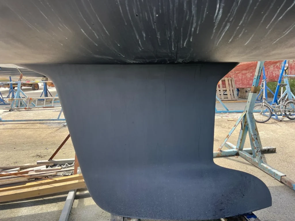 Kiel in gietijzer met loden bol, ingekapseld in GRP
