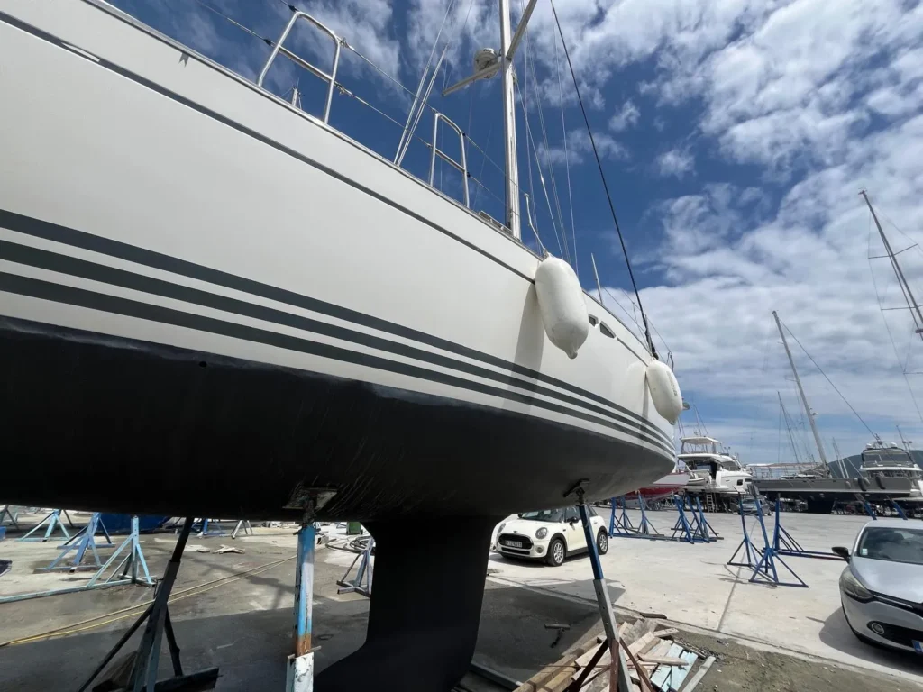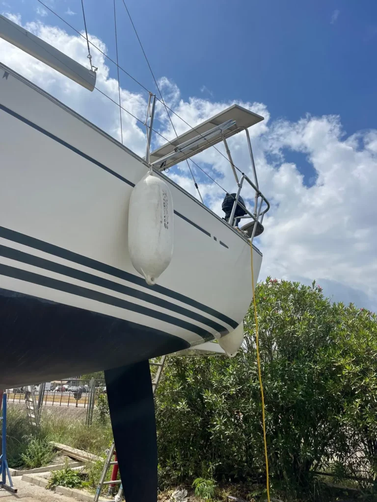 Onderhoud van de bodem door de werf (3x epoxy/antifouling), jaarlijks onderhouden door een professional, meest recent in 2025